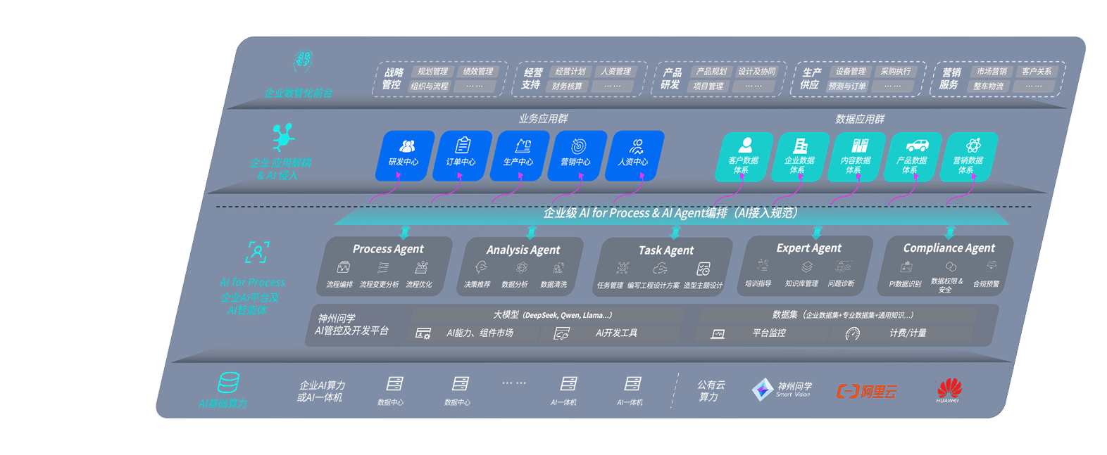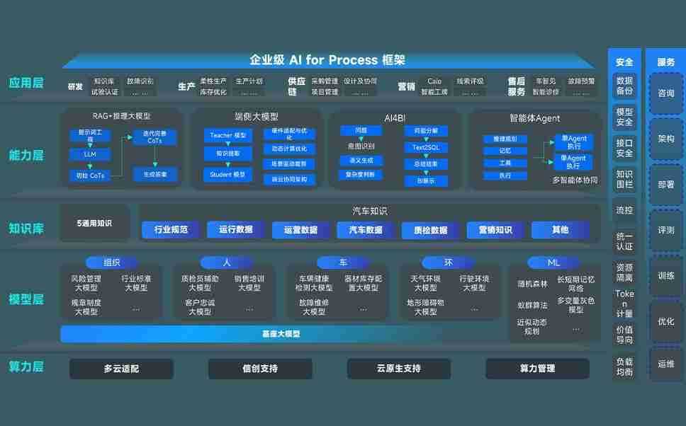 端到端的一站式AI工作空间深度融合了从企业战略规划到日常经营的全流程业务板块,,,定向解决车企内部领域多、、、部门多、、、、链条长、、、、场景碎片化等难题,,,支持车企快速构建以AI为核心的生产力写作体系,,,实现任务执行与AI能力的无缝集成与交互